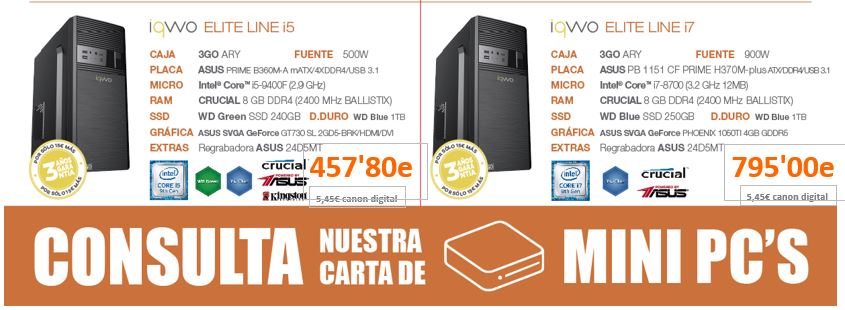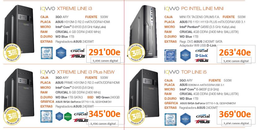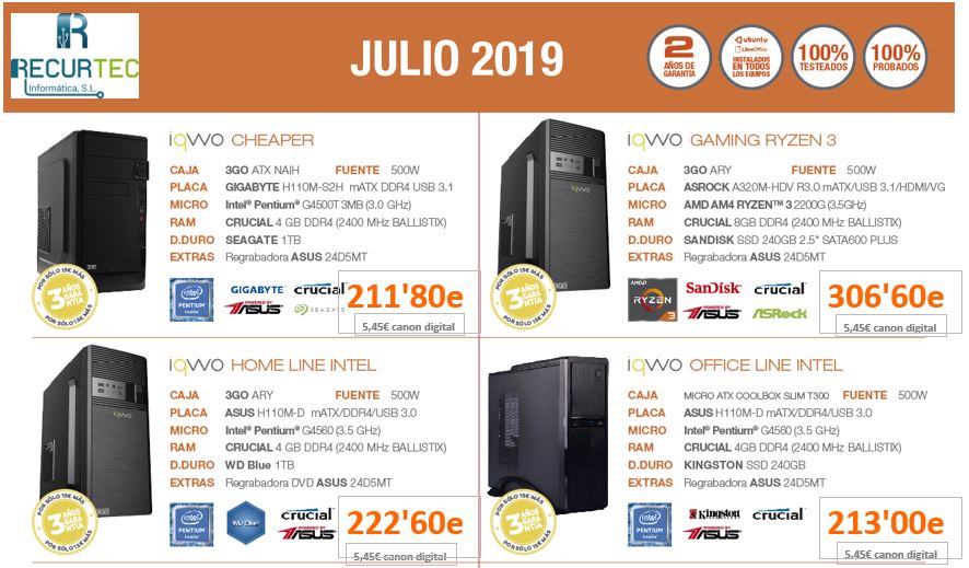 Oferta equipos económicos Julio-19 (IVA no incluido)